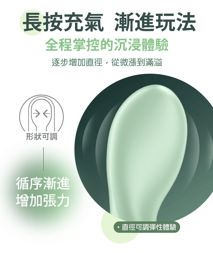 長按充氣鍵 ➝ 緩慢膨脹,形狀隨妳掌控